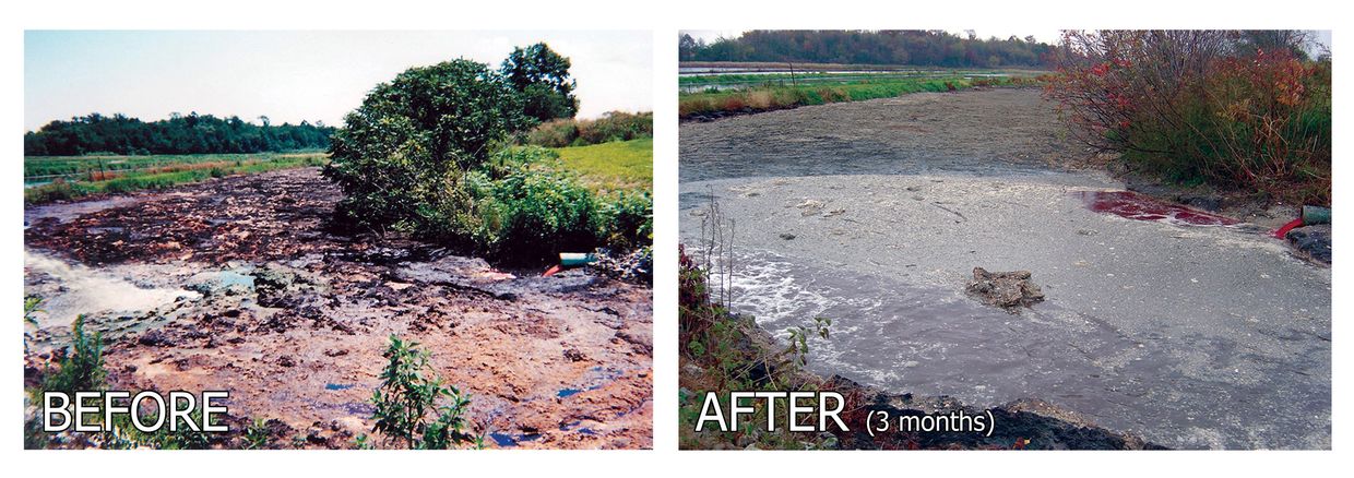 "We had an overwhelming sludge accumulation in our two 10-acre cells, and rather than having it dredged and hauled, we decided to try your Sludgebugs Lagoon Blend 2-year aggressive treatment program. After two years, we had eliminated 75% of the sludge volume. We saw a 3-foot reduction in the 5-foot sludge mounds at both inlet pipes. We also noticed that the 10-12 inches of sludge around the perimeter of each pond disappeared, and virtually all of the floating debris was eliminated in the first week of use."